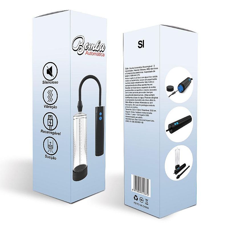 Bomba Peniana – possui anel em silicone. Ótima para tratar a ejaculação precoce, a impotência masculina e desenvolver o órgão masculino. Melhora a irrigação sanguínea do pênis proporcionando melhor ereção. 3 Modos de Intensidades. Recarregável.