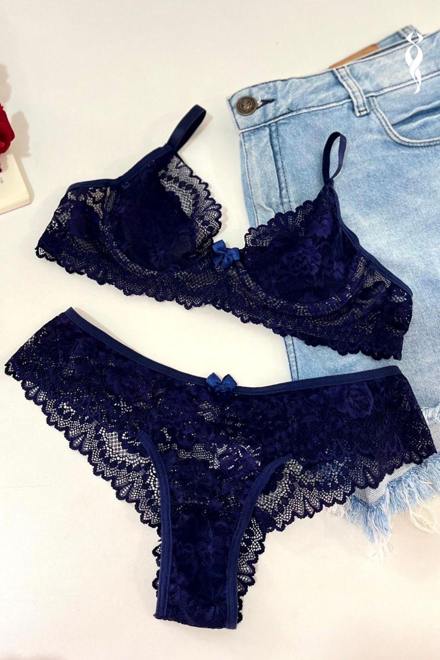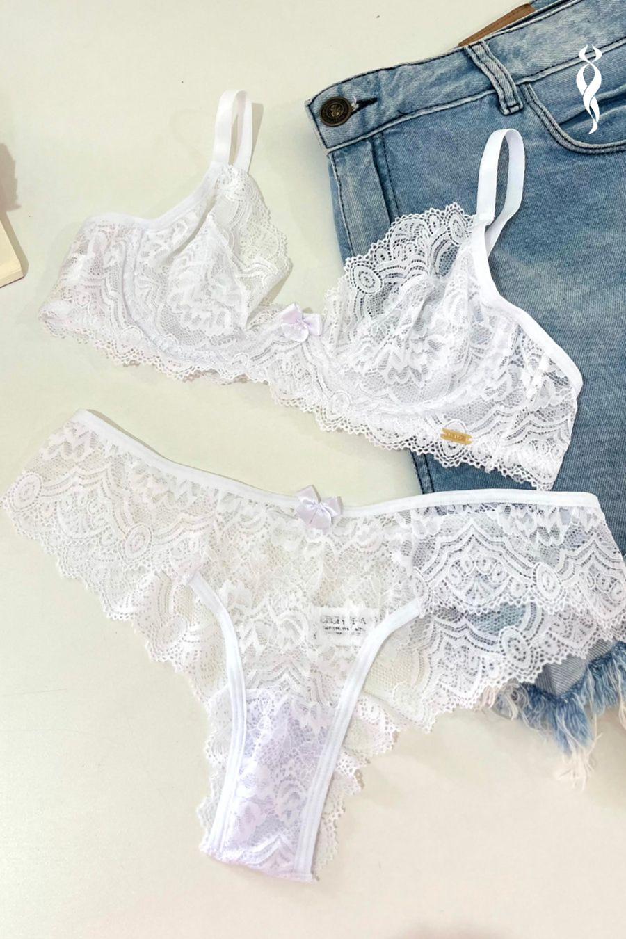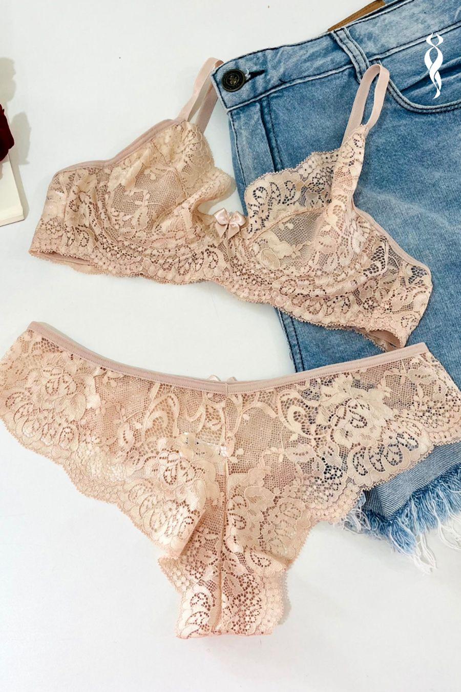 CONJUNTO RENDADO SEM BOJO COM ARO E CALCINHA FIO RENDADA